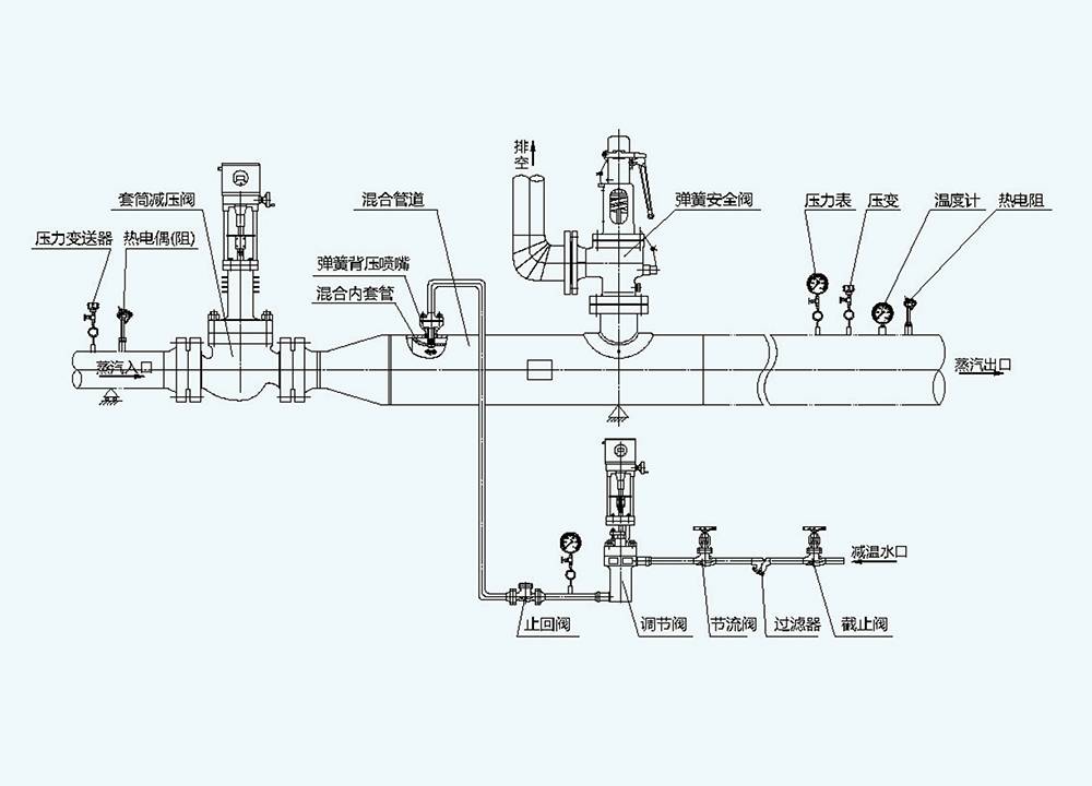*减温减压装置的作用是将高压蒸汽/高温锅炉生产的蒸汽减压和降温至工厂所需的要求。