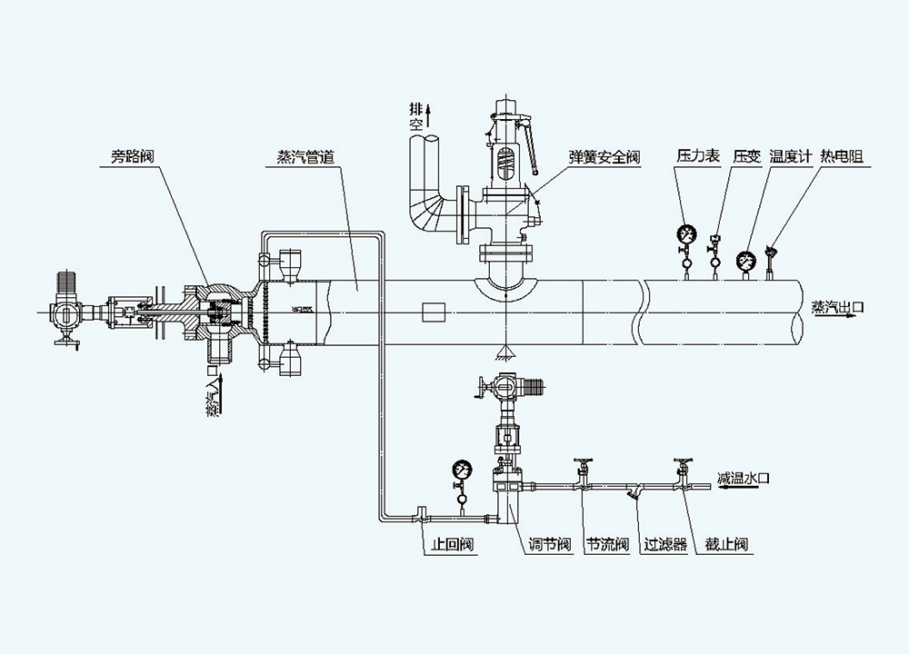 *减温减压装置的作用是将高压蒸汽/高温锅炉生产的蒸汽减压和降温至工厂所需的要求。